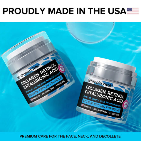 SimplyVital Collagen, Retinol & Hyaluronic Acid Cream - Anti-Aging Face Moisturizer for Face, Firming Skin Care Neck & Décolleté - Made in USA, Daily Moisturizer Face Cream Day & Night - 1.7 fl.oz.